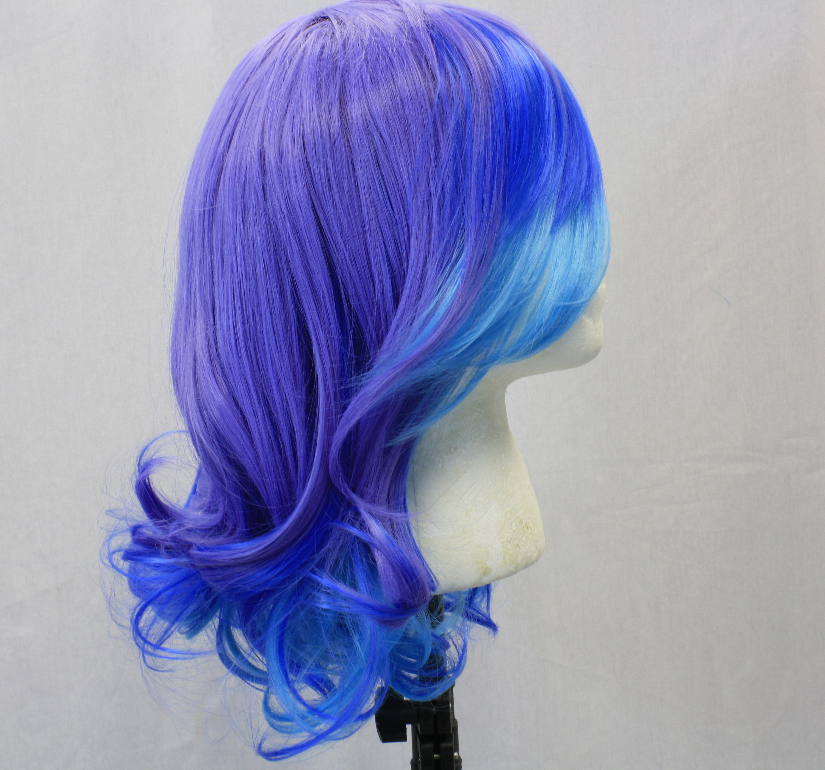This is a new no-brand wig! It has a lavender main color with blue and turquoise underlayers. It's curly at the ends and the fibers are EXTREMELY nice. This wig is stupidly silky. Like, to the point where if you tried to spike it, you wouldn't be able to. It has an adjustable wig cap.